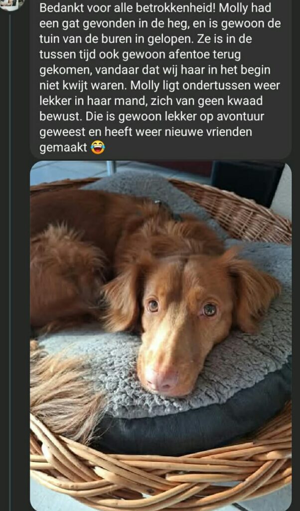 De Chip werd uitgelezen en deze stond perfect geregistreerd zodat wij gelijk het baasje konden bellen.
